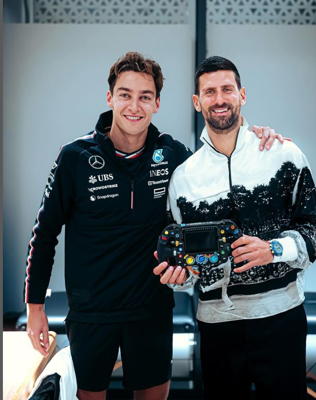 雷速体育11月30日讯 F1卡塔尔站本周末打响,塞尔维亚网球天王德约科维奇昨天现场观战F1卡塔尔大奖赛,参观法拉利、迈凯伦P房,和拉塞尔、诺里斯、奥康等车手合影交流。这引来了小德新教练穆雷的吐槽,他表示他应该在训练场上。