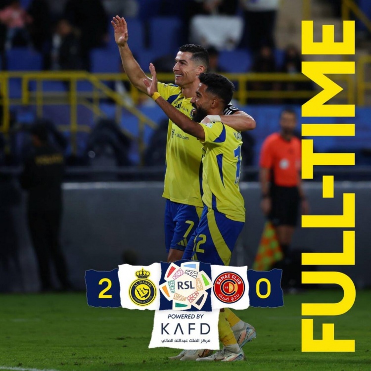 C罗双响连续4场破门打进7球,利雅得胜利2-0击败达马克。